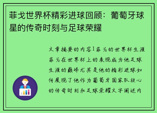 本文将探讨那些首次亮相世界杯赛场的震撼瞬间,以及它们背后不为人知的故事。从球员的初登场,到为国家争光的激动时刻,再到那些改变比赛走向的关键时刻,世界杯赛场总是充满了传奇与奇迹。在这些充满戏剧性的瞬间背后,往往藏着许多鲜为人知的奋斗历程与艰辛过程。本文将从四个方面深入阐述这一主题:首次亮相世界杯的震撼...